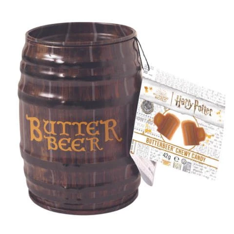 Butterbeer is een drankje dat veel Harry Potter fans direct in de sfeer van Hogwarts brengt. En terecht. Als echte Harry Potter fan zie je zo’n groot glas met een flinke schuimkraag al direct voorbij komen. Nu is Boterbier niet alleen als drankje te krijgen, maar ook als een snoepje. En van deze verpakking krijgt elke fan direct een warm gevoel. Dit blikje is gemaakt in de vorm van een houten tonnetje butterbeer en is gevuld met het butterbeer snoep van Harry Potter.
