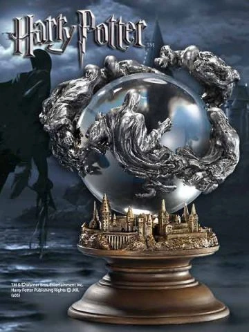 Wat is dit een indrukwekkend stuk. Een kristallen bal met daar omheen een ring van tin met Dementors. De kristallen bal rust op een standaard in de vorm van Zweinstein / Hogwarts.