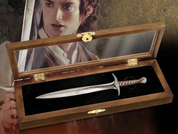 Het zwaard dat Bilbo Baggins vond in een grot heet Sting en licht blauw op zodra er orcs in de buurt zijn. Nu is dit zwaard als brievenopener te krijgen in een mooi houten display.